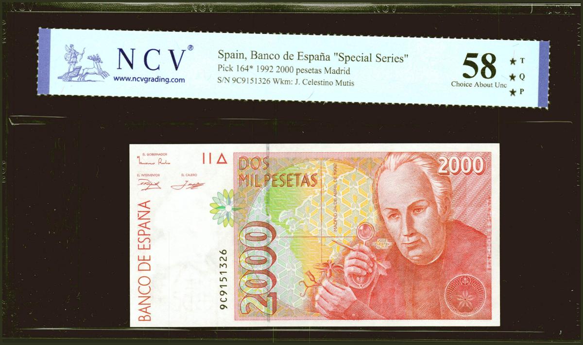 2000 Pesetas. 24 de Abril de 1992. Serie especial 9C. (Edifil 2021: 482Ab). EBC+++. Encapsulado NCV58TQP.