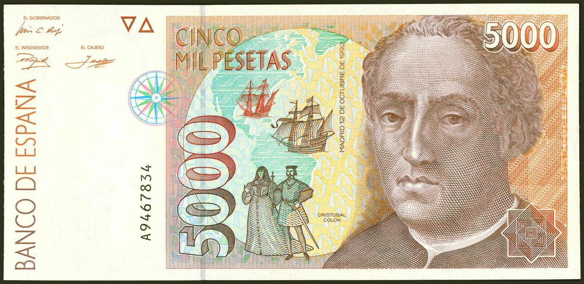 5000 Pesetas. 12 de Octubre de 1992. Serie A. (Edifil 2021: 484a). SC.