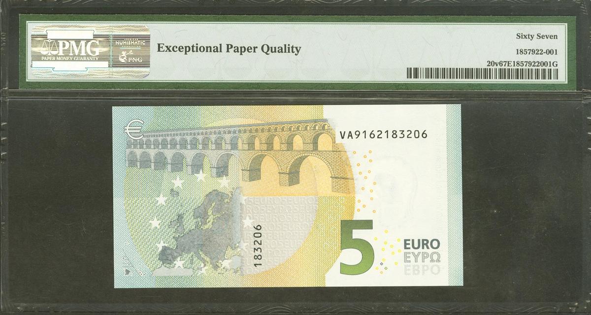 5 Euros. 2 de Mayo de 2013. Firma Draghi. Serie V (España). (Edifil 2021: 493, Pick: 20v). SC. Encapsulado PMG67EPQ.