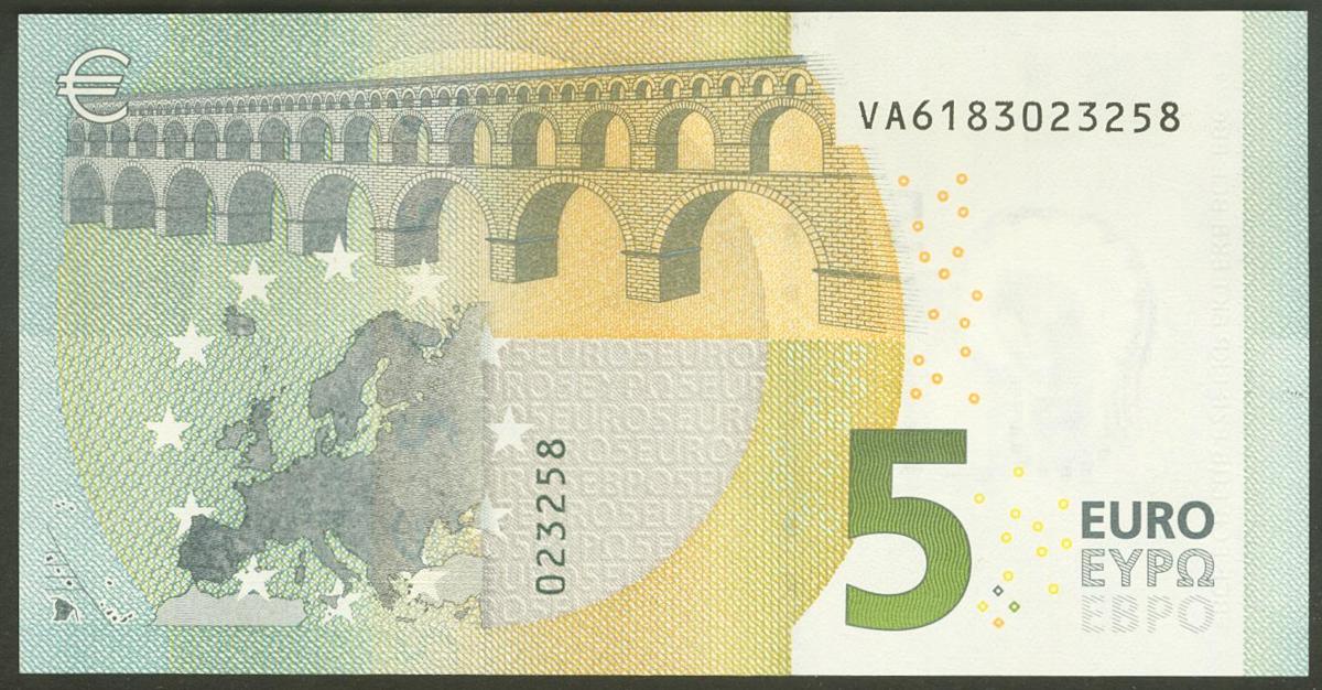 5 Euros. 2 de Mayo de 2013. Firma Draghi. Serie V (España). (Edifil 2021: 493). Ondulación natural del proceso de fabricación (este es el único motivo de "quitarle" el SC) EBC+++.