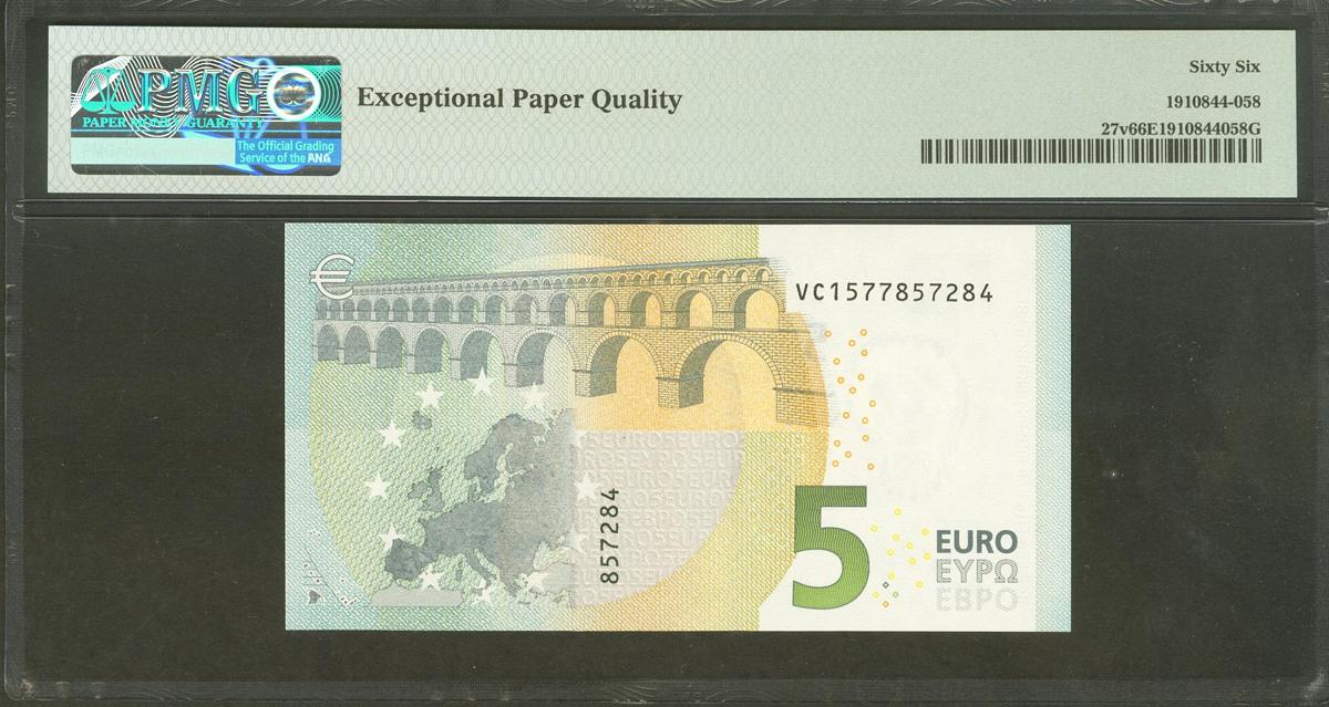5 Euros. 2 de Mayo de 2013. Firma Lagarde. Serie V (España). (Edifil 2021: 493A, Pick: 27v). Apresto original. SC. Encapsulado PMG66EPQ.