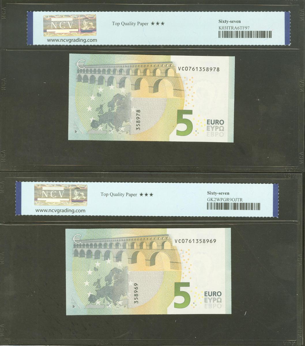 5 Euros. 2 de Mayo de 2013. Pareja correlativa. Firma Lagarde. Serie V (España). (Edifil 2021: 493A, Pick: 27v). SC. Encapsulado NCV67TPQ.