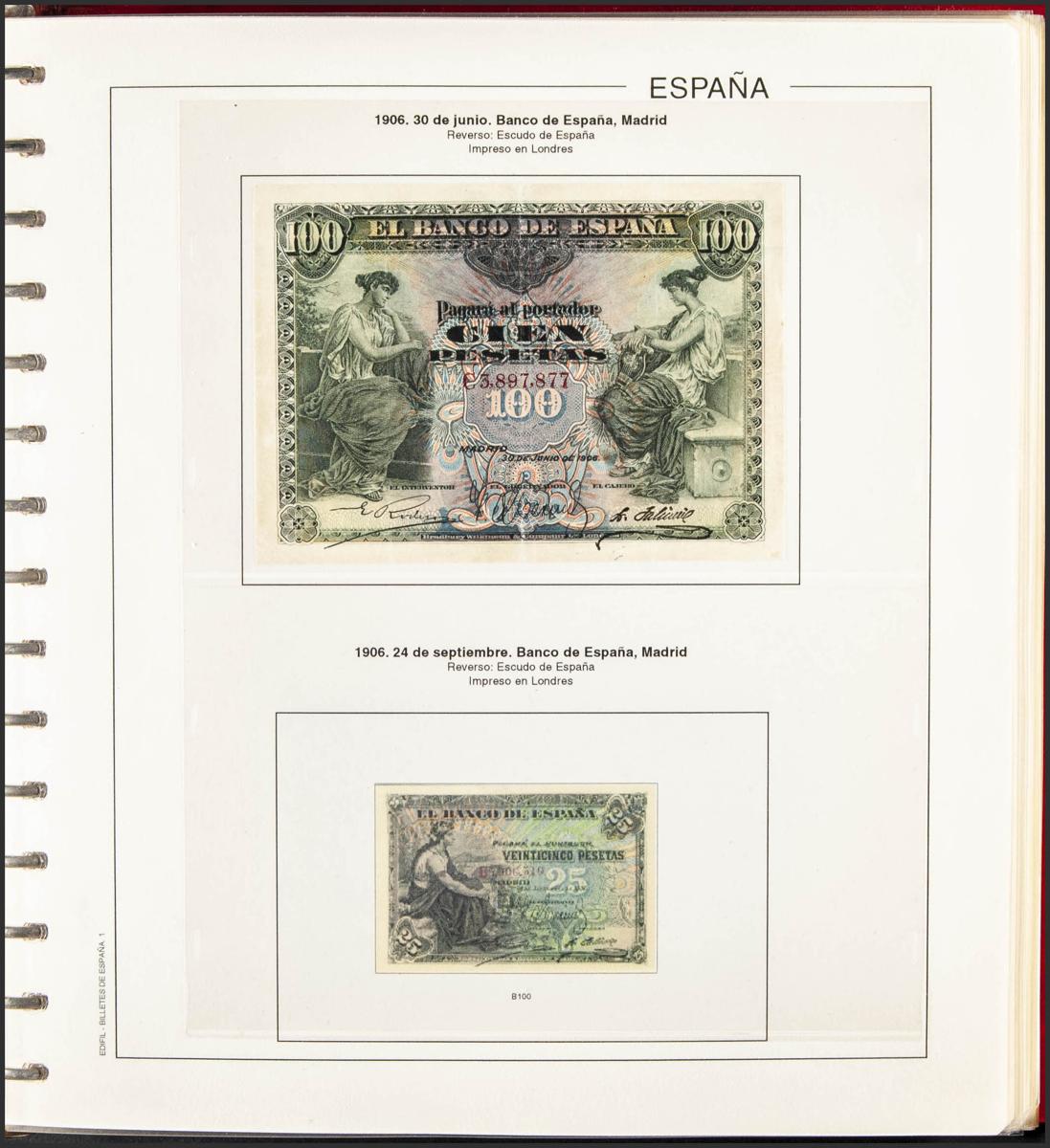 Colección de la mayoría de los billetes emitidos por el Banco de España desde el Reinado de Alfonso XIII hasta el de Juan Carlos I, con la mayoría de billetes en calidades bajas hasta Juan Carlos I, a partir de entonces con buenas calidades entre SC- y EBC+. IMPRESCINDIBLE EXAMINAR.