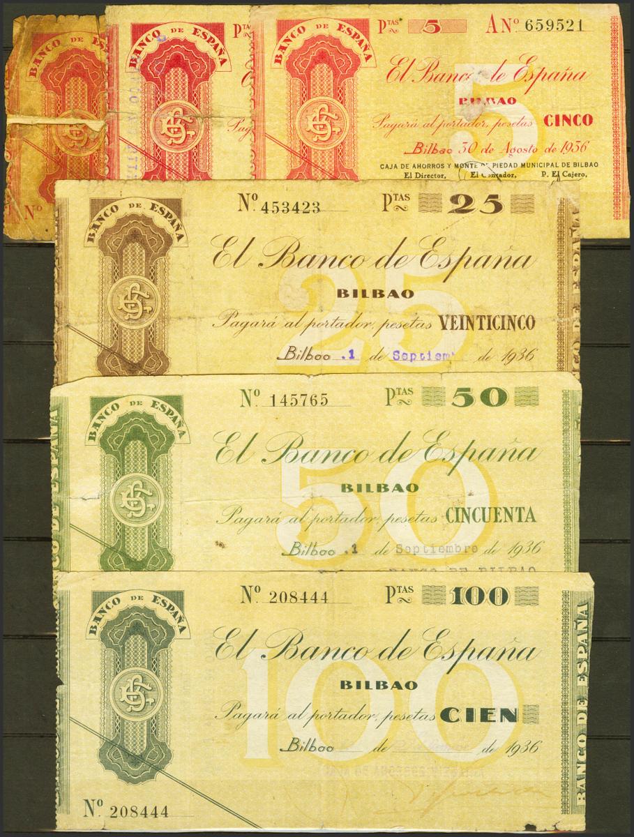 Conjunto de billetes del Banco de Bilbao y de la Guerra Civil de Barcelona, se incluyen dos nombramientos del Cónsul de Tuy, el señor Joao Antonio Lecoq además de dos reproducciones de billetes extranjeros. A EXAMINAR.