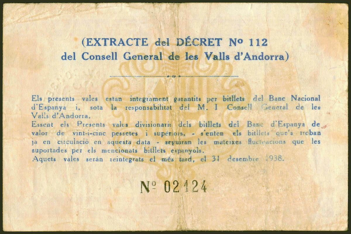 ANDORRA. 5 Pessetes. 19 de Diciembre de 1936. (Edifil 2021: 7, Pick: 8). Raro. MBC.