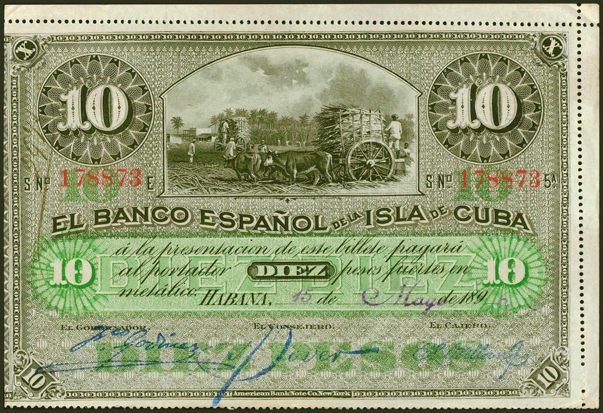 BANCO ESPAÑOL DE LA ISLA DE CUBA. 10 Pesos. 15 de Mayo de 1896. Serie E y fechado con estampilla. (Edifil 2017: 73a). EBC.