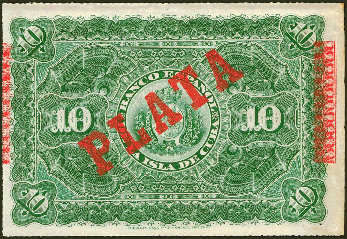 BANCO ESPAÑOL DE LA ISLA DE CUBA. 10 Pesos. 15 de Mayo de 1896. Serie E y con la sobrecarga PLATA, al dorso. (Edifil 2021: 82). Puntito de aguja. EBC+.