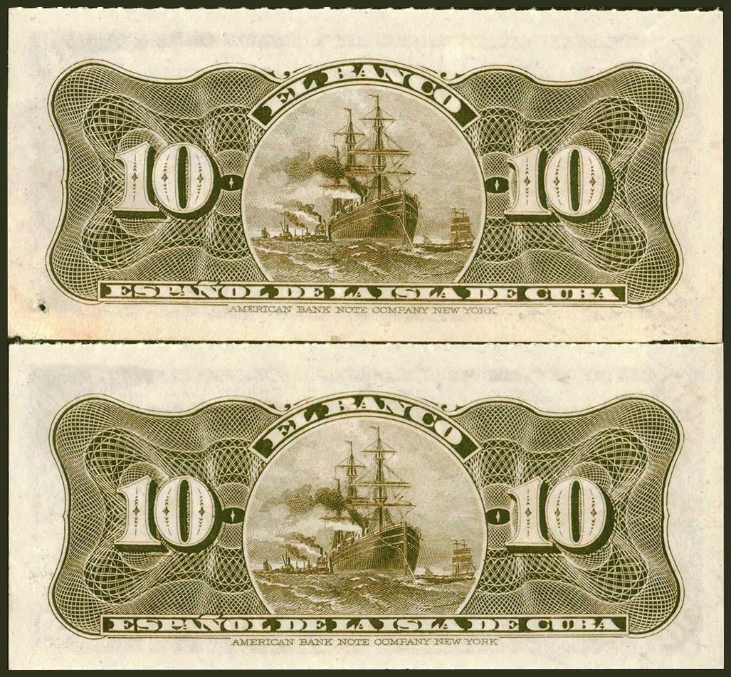 BANCO ESPAÑOL DE LA ISLA DE CUBA. 10 Centavos. Pareja correlativa. 15 de Febrero de 1897. Serie K. (Edifil 2021: 84). Conserva todo su apresto original y uno de ellos puntito de aguja natural de la fabricación. SC.