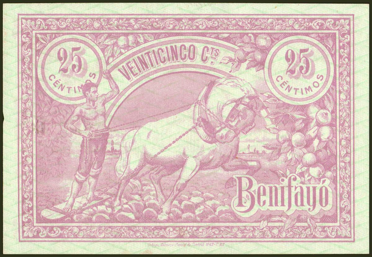 BENIFAYO (VALENCIA). 25 Céntimos. (1936ca). (González: 1112). SC-.