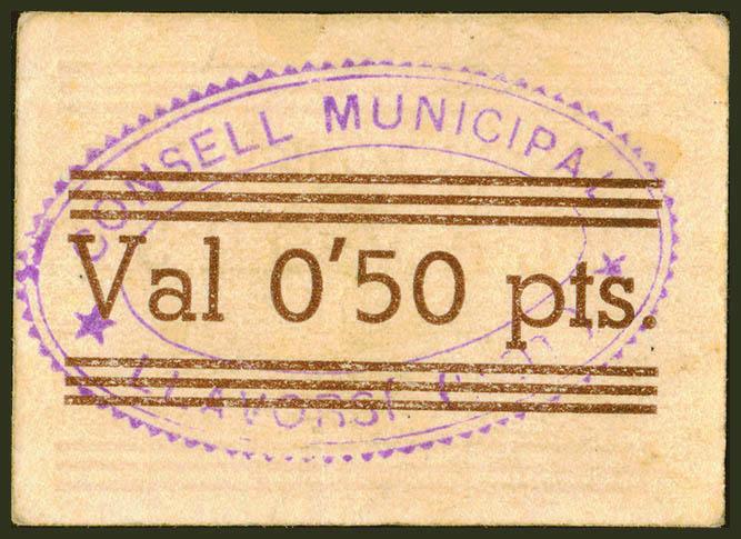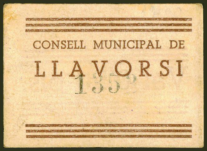 LLAVORSI (LERIDA). 50 Céntimos. (1937ca). (González: 8356). Raro. MBC+.