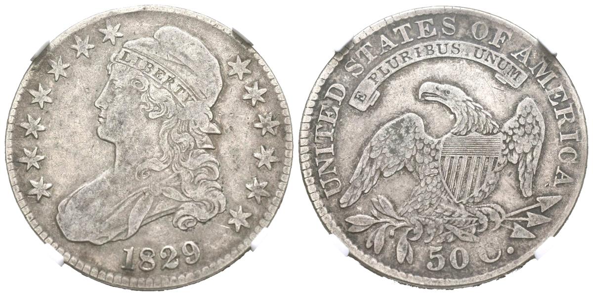 ESTADOS UNIDOS. 1/2 Dollar. (Ar. 13,48g/33mm)*. 1829. Philadelphia. (Km#37). Encapsulado por NGC VF20. *Peso y medidas teóricos.