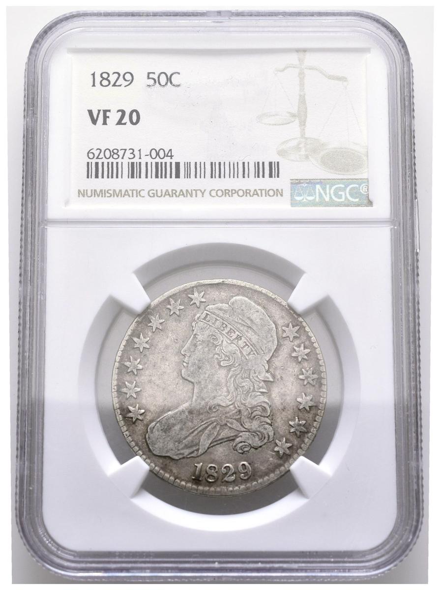 ESTADOS UNIDOS. 1/2 Dollar. (Ar. 13,48g/33mm)*. 1829. Philadelphia. (Km#37). Encapsulado por NGC VF20. *Peso y medidas teóricos.
