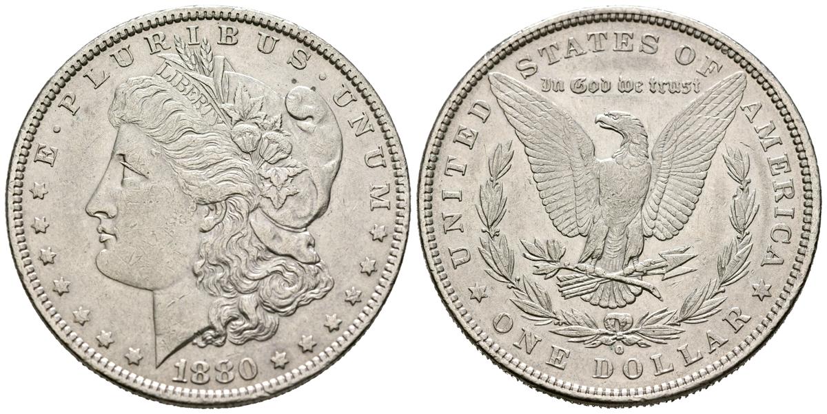 ESTADOS UNIDOS. 1 Dollar. (Ar. 26,73g/38mm). 1880. Nueva Orleans O. (Km#110). EBC-. Marquitas.