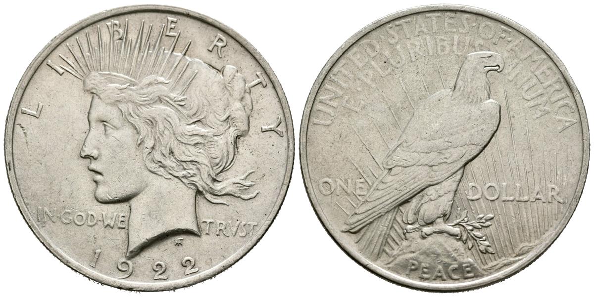 ESTADOS UNIDOS. 1 Dollar. (Ar. 26,73g/38mm). 1922. Philadelphia. (Km#150). MBC+.