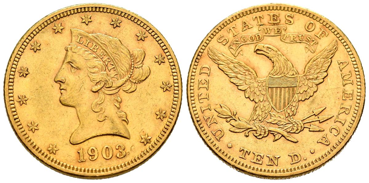 ESTADOS UNIDOS. 10 Dollars. (Au. 16,71g/27mm). 1903. Philadelphia. (Km#102). MBC+. Marquitas.