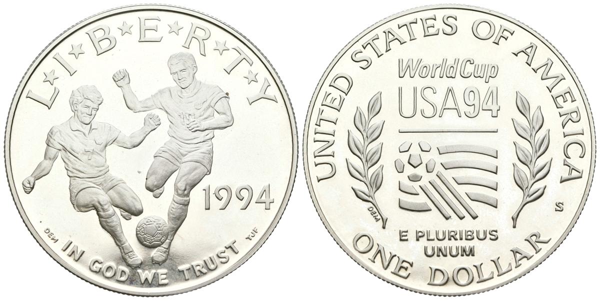 ESTADOS UNIDOS. 1 Dollar. (Ar. 26,66g/38mm). 1994. San Francisco S. Mundial de Fútbol´94. (Km#247). PROOF.