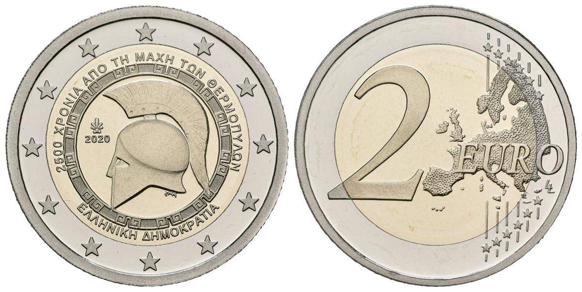 GRECIA. Moneda de 2 Euros del año 2020. Conmemoración de la Batalla de las Termópilas. Presentada en estuche oficial con certificado de autenticidad. PROOF. Tirada de sólo 5 mil ejemplares.