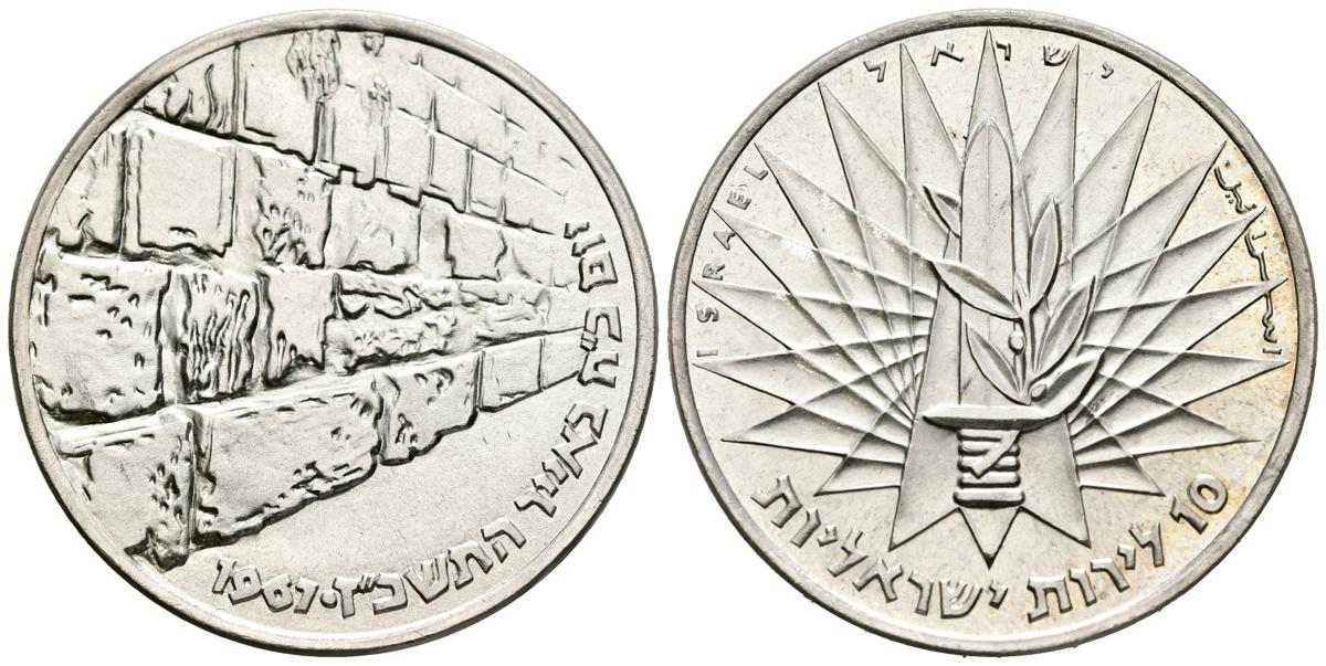 ISRAEL. 10 Lirot. (Ar. 25,97g /37mm). 1967. Muro de las Lamentaciones. (Km#49). EBC+.