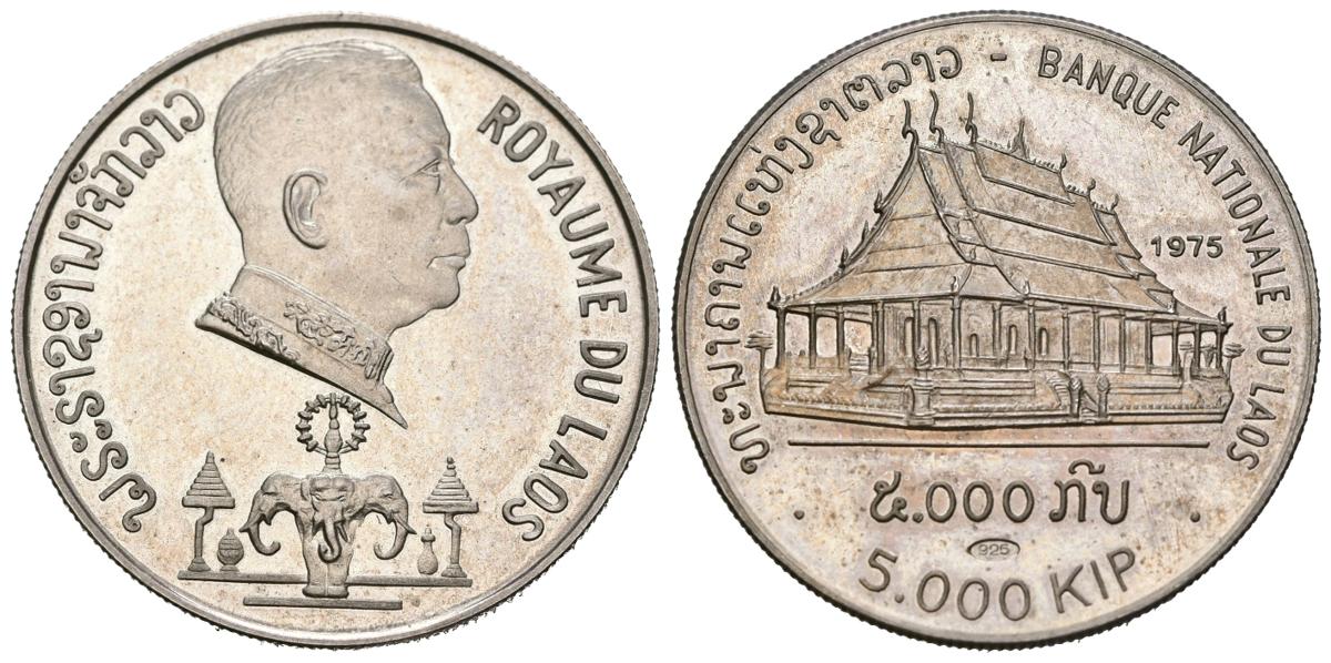LAOS. 5000 Kip. (Ar. 11,70g/30mm). 1975. Berlín. Wat Phra Kio Museum. (Km#17). PROOF. Levísimas marquitas. Muy escasa.