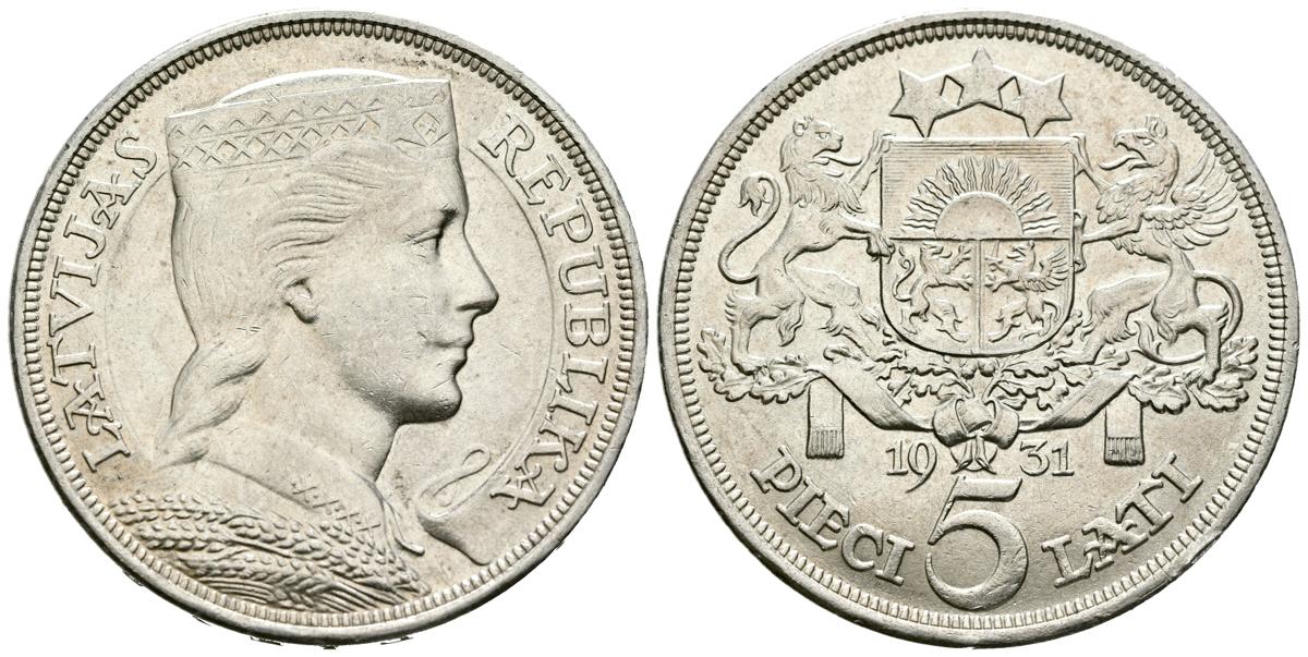 LETONIA. 5 Lati. (Ar. 25,01g /37mm). 1931. Primera República (1918-1940). (Km#9). EBC+. Leves marquitas.