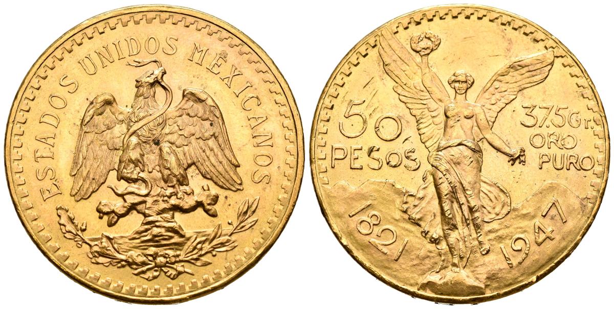 MÉXICO. 50 Pesos. (Au. 41,62g/37mm). 1947. (Km#481). EBC. Marquitas en reverso.