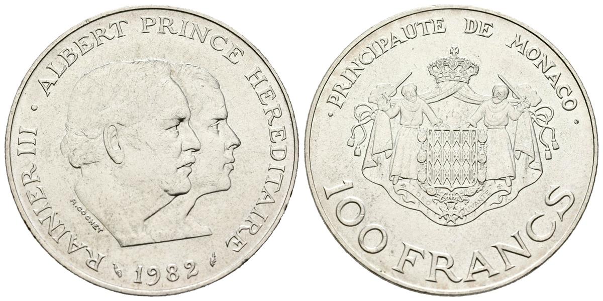 MÓNACO. 100 Francos. (Ar. 15,03g/31mm). 1982. Alberto Príncipe Heredero. (Km#161). MBC+.