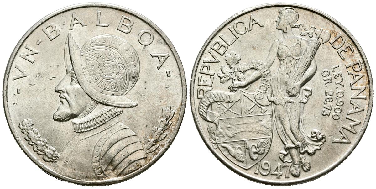 PANAMÁ. 1 Balboa. (Ar. 26.78g/38mm). 1947. (Km#13). EBC-. Marquitas en anverso.