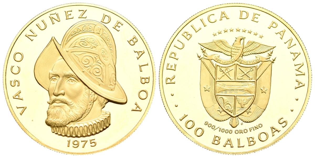 PANAMÁ. 100 Balboa. (Au. 8,38g/26mm). 1975. V Centenario de Vasco Nuñez de Balboa. (Km#41). PROOF.