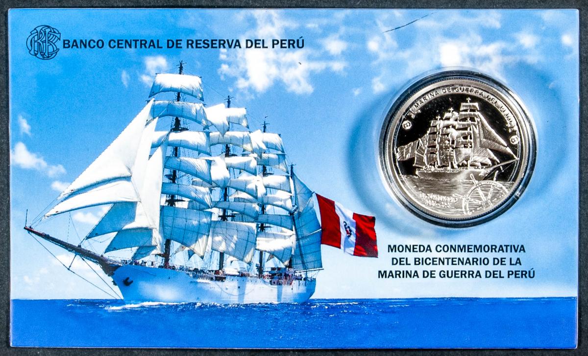 PERÚ. 1 Sol (Ar. 36,62g/37mm). 2021. Banco Central de Reserva del Perú. Bicentenario de la Marina de Guerra. PROOF. Incluye set oficial. Tirada de sólo 5000 unidades.