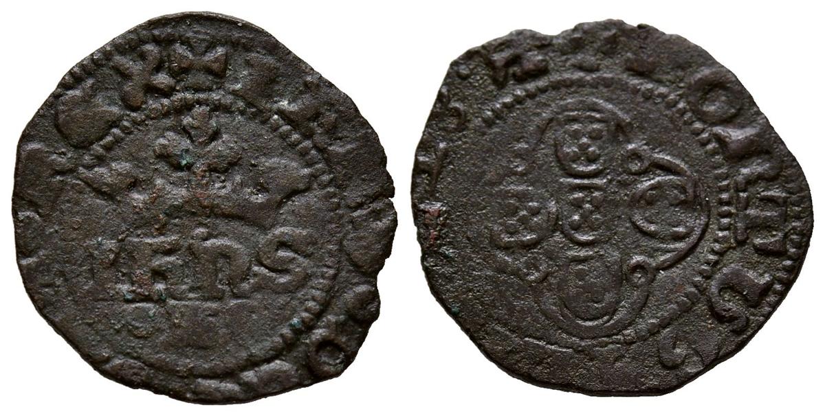 PORTUGAL, Joao I. 1/4 de Real de 10 Soldos (Ae. 1,01g/16mm). Lisboa. (Gomes 05.01). MBC. Rara.