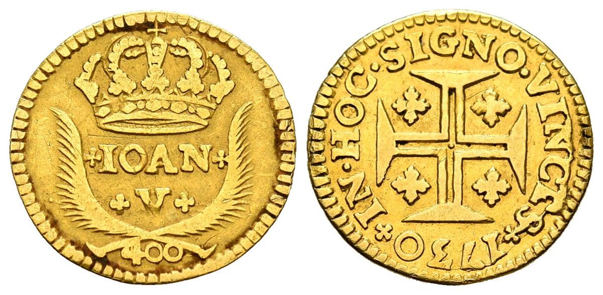 PORTUGAL, Joao V (1706-1750). Cruzado Novo (Pinto). (Au. 1,01g/14mm). 1730. (Gomes 85.10). Corona de 5 arcos. MBC/MBC+.