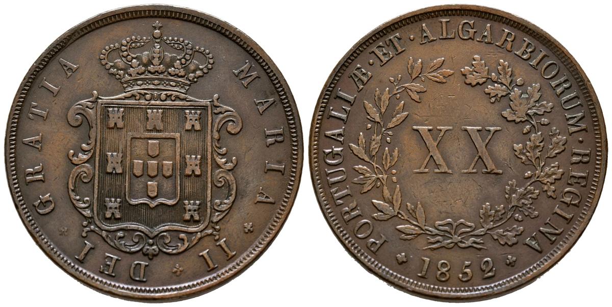 PORTUGAL, María II. XX Reis. (Ae. 24,85g/37mm). 1852. (Gomes 34.06). MBC+.