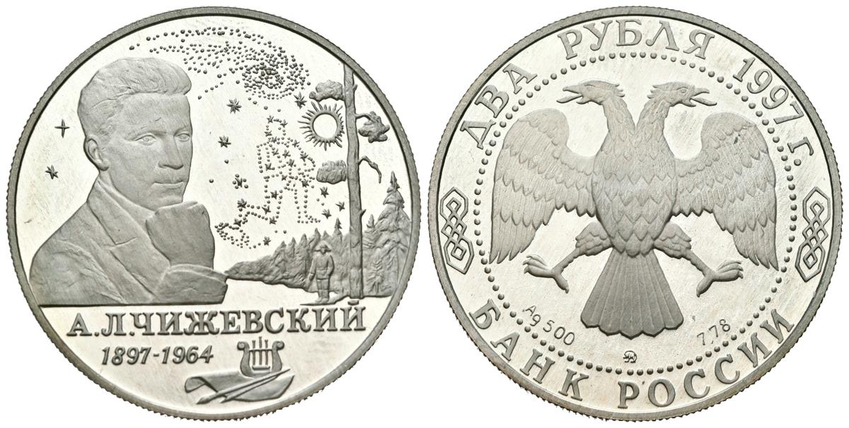 RUSIA. 2 Rublos. (Ar. 15,95g/33mm). 1997. 100 Aniversario del Nacimiento de Alexander Chizhevsky. (Km#551). PROOF. Tirada de solo 10.000 unidades.
