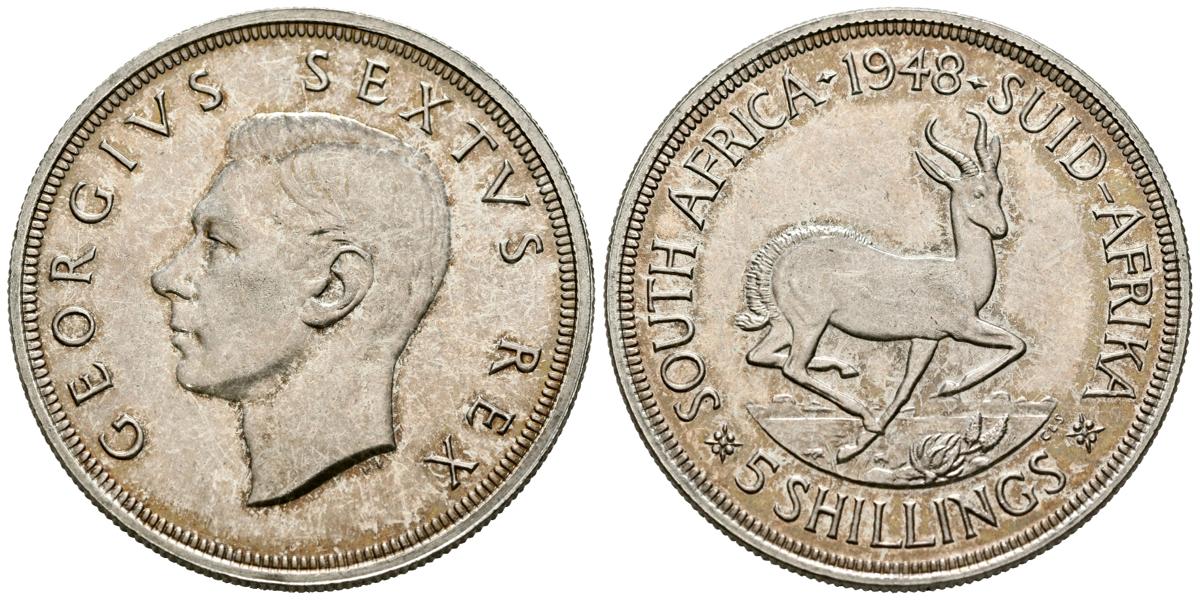 SUDÁFRICA. 5 Shillings. (Ar. 28,32g/39mm). 1948. Jorge VI. (Km#40.1). EBC-. Rayitas.