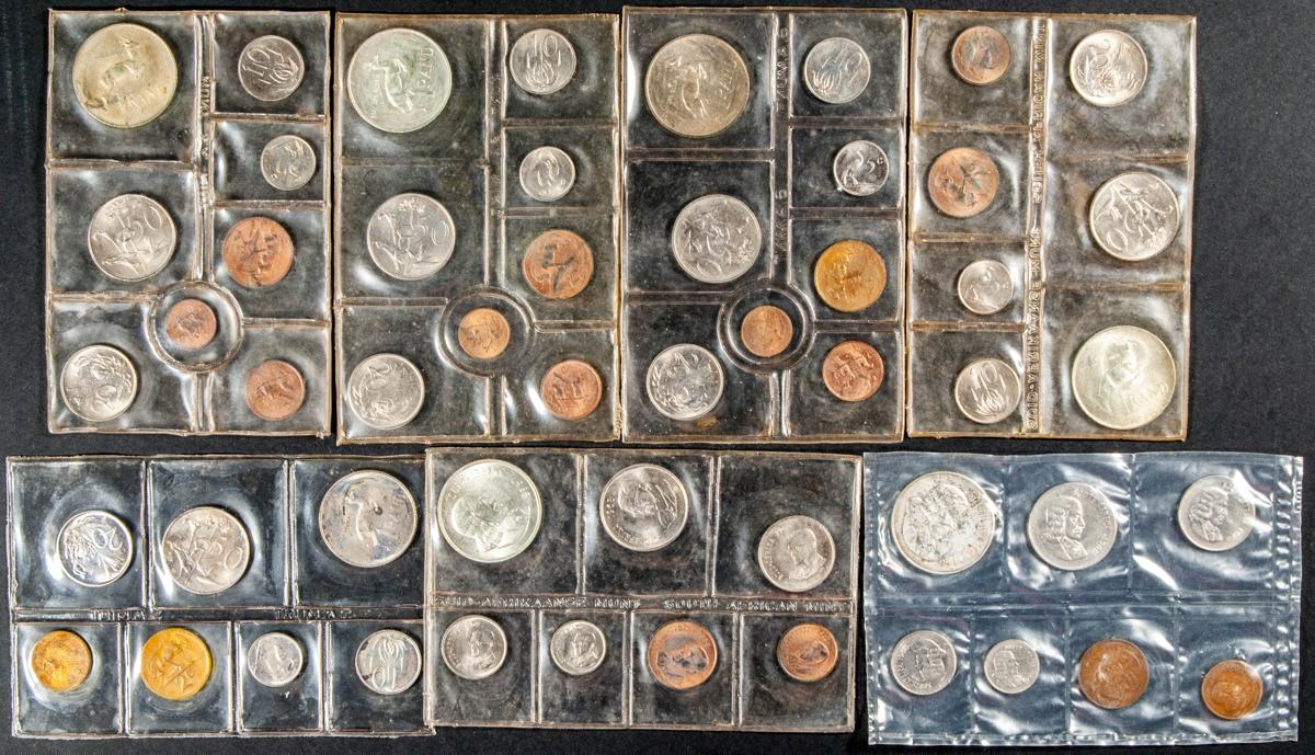 SUDÁFRICA. Conjunto de 7 sets o tiras de los años: 1966, 1967, 1968, 1972, 1973, 1975 y 1981. Valores comprendidos entre 1 Cent y 1 Rand. SC. A EXAMINAR.