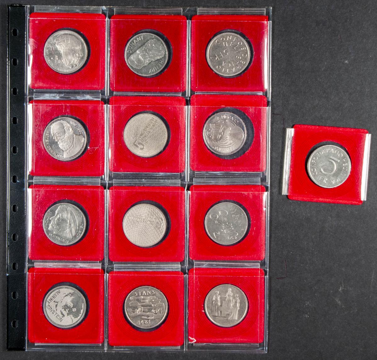 SUIZA. Conjunto de 13 monedas de 5 Francos acuñados en la década de los 70 y 80 del siglo XX. Todas las piezas diferentes. Alto nivel de conservación general. A EXAMINAR.
