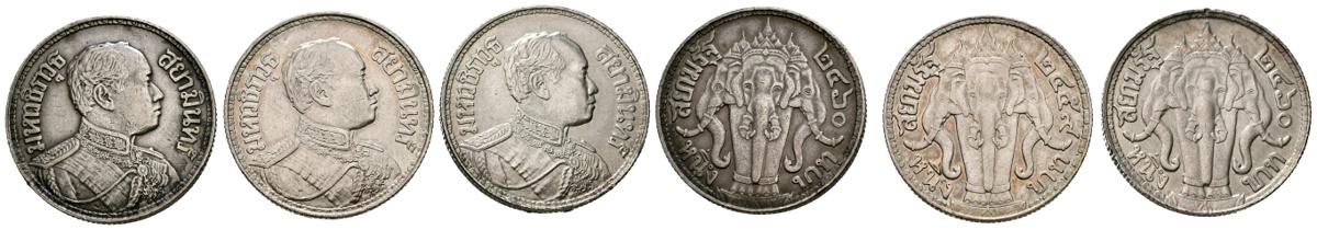 TAILANDIA. Conjunto de 3 monedas en plata de 1 Baht acuñadas durante el reinado de Rama VI. 1913-1918. Diferentes estados de conservación. A EXAMINAR.