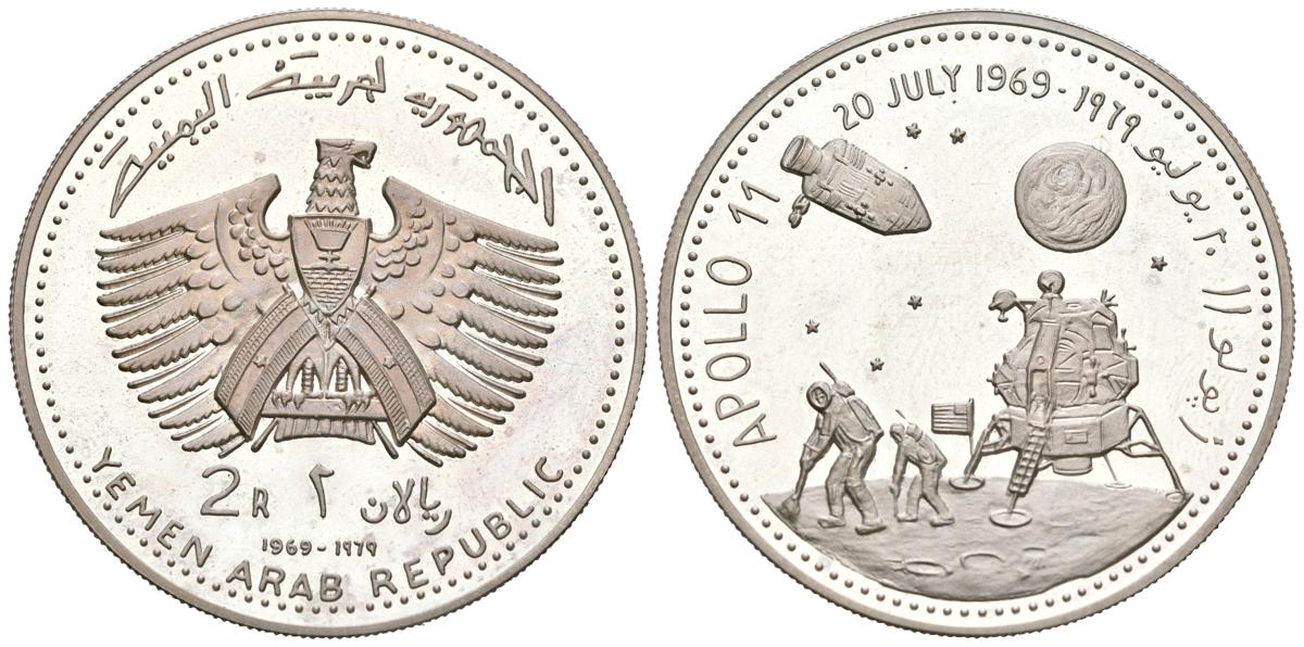 YEMEN. 2 Rials. (Ar. 25,09g/37mm). 1979. Apolo 11. Alunizaje. (Km#3). PROOF.