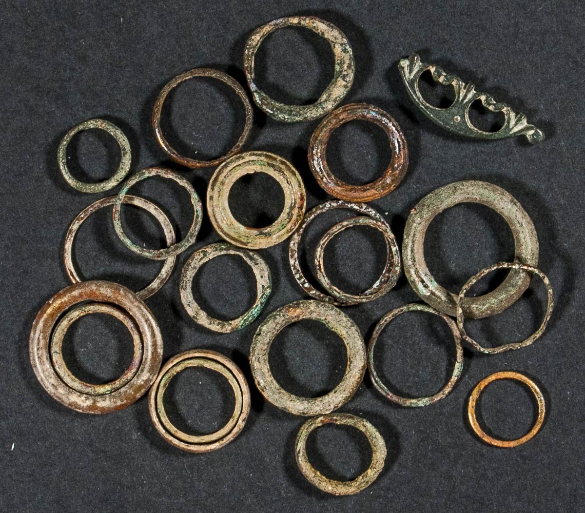 Conjunto de premonedas, en su gran mayoría tipo anillo, y una de ellas tipo lingote adornado. A EXAMINAR.