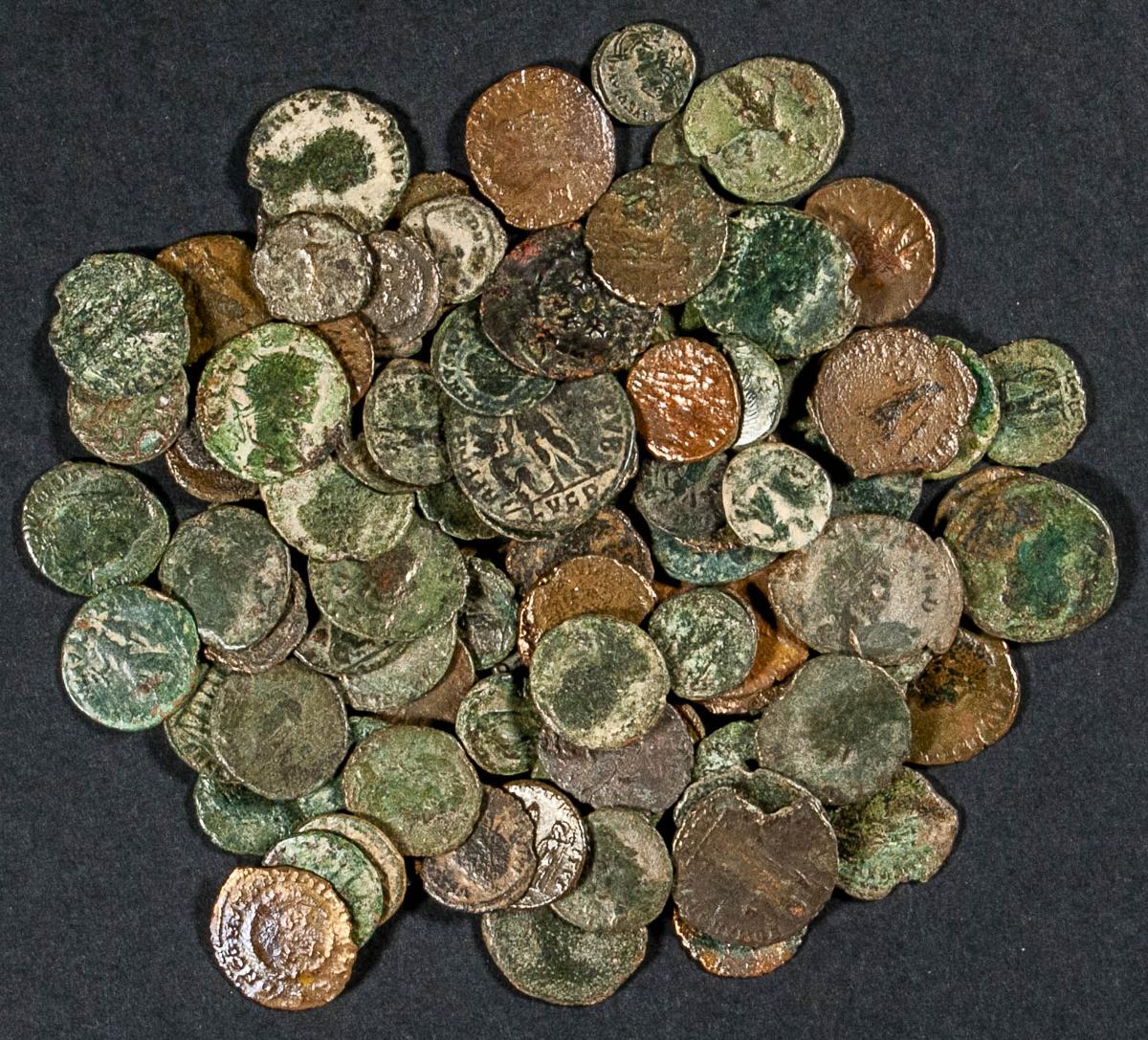 IMPERIO ROMANO. Gran conjunto compuesto por aproximadamente 100 monedas de bronces pequeños de distintos emperadores del bajo Imperio Romano. A EXAMINAR.