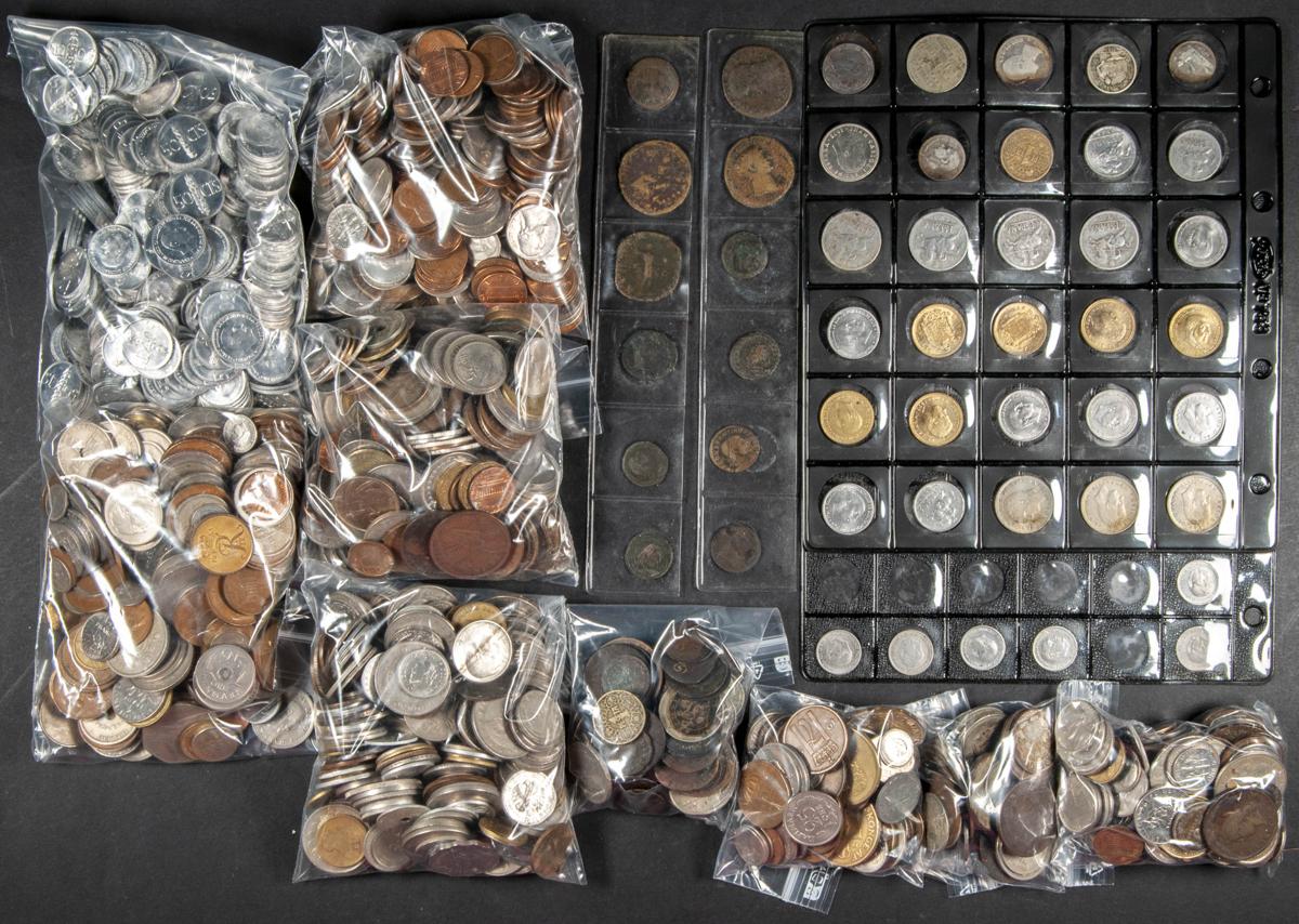 Interesante y variado lote compuesto por centenares de monedas de diversos periodos (desde el Imperio Romano a la actualidad) con una enorme variedad de paises, fechas, materiales y módulos representados. Destaca una amplia representación de piezas de 50 Céntimos de 1966 *71 en estado SC. Diferentes estados de conservación. A EXAMINAR.