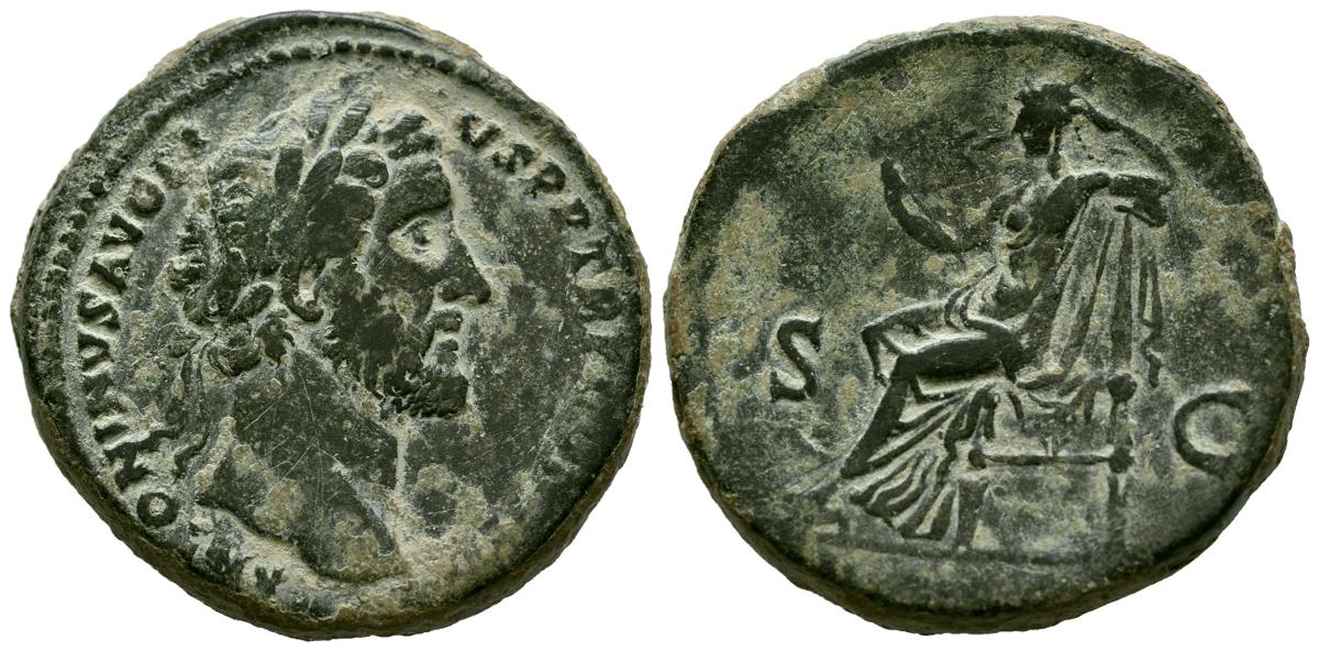 ANTONINO PIO. Sestercio. (Ae. 23,95g/31mm). 141-143 d.C. Roma. (RIC 625). Anv: Cabeza laureada de Antonino Pío a derecha, alrededor leyenda: ANTONINVS AVG PIVS P P TR P COS IIII. Rev: Ops sentada a izquierda, entre S-C. MBC-.