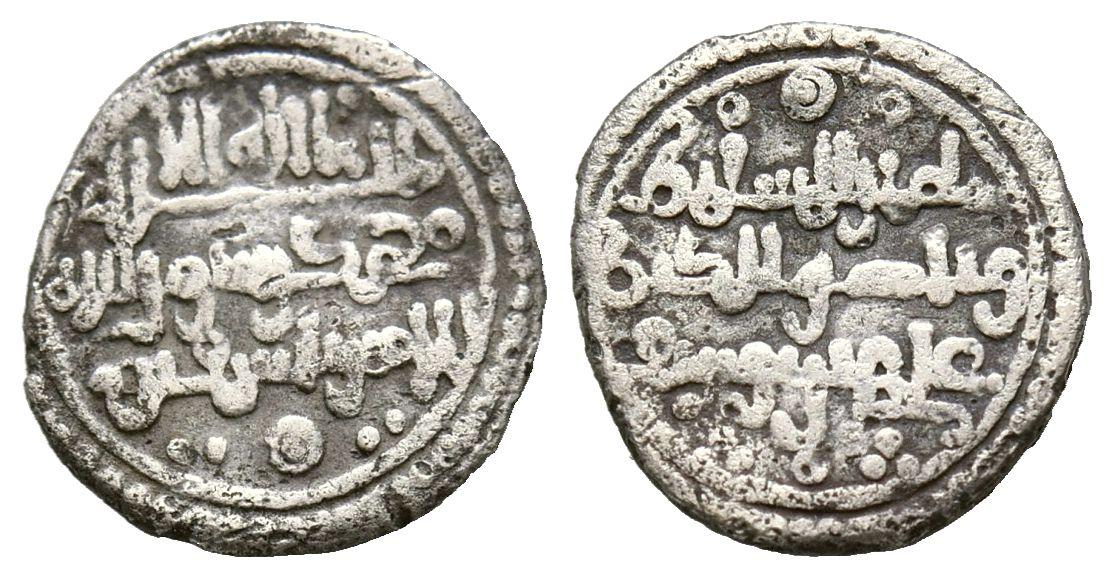 ALMORAVIDES, Ali ibn Yusuf con el emir Tashfin. Quirate. (Ar. 0,84g/12mm). (Vives 1824; Hazard 999; Benito Cj3). MBC.