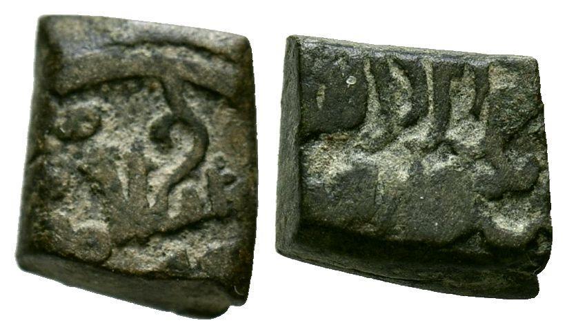 ALMORAVIDES, Ali ibn Yusuf y el emir Sir (522-533H). Dirham fraccionario. (Ae. 1,36g/8mm). (Tipo Vives 1847; Prieto y Vives 452). Nombres no visibles. Atribuidas a la ceca de Valencia. I.A. en escritura nesjí. MBC.