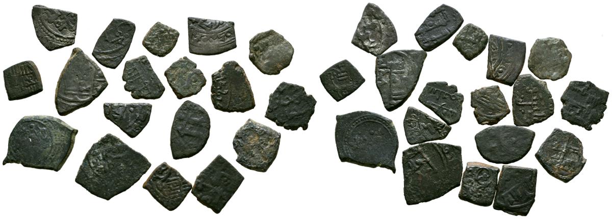 Lote compuesto por 18 fracciones de Dirham de diferentes tipos handusíes. A EXAMINAR.