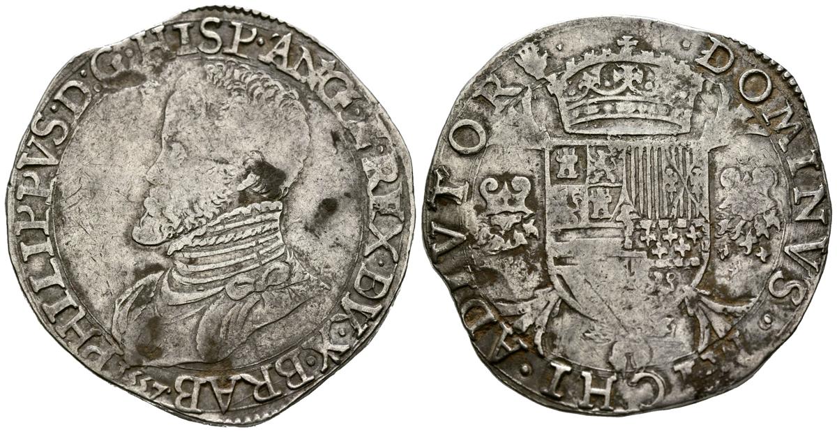 FELIPE II (1556-1598). 1 Escudo. (Ar. 32,85g/40mm). 1557. Amberes. (Vicenti 1169). MBC+.