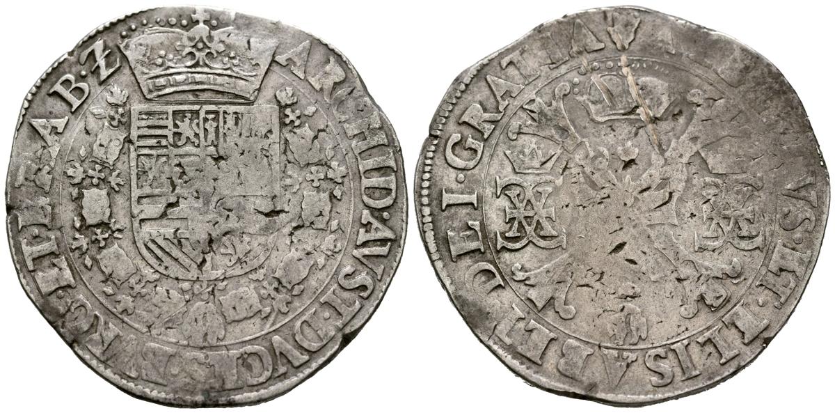 ALBERTO e ISABEL (1598-1621). 1 Patagón. (Ar. 27,47g/42mm). S/D. Amberes. (Vicenti 346). MBC. Rayas en reverso.