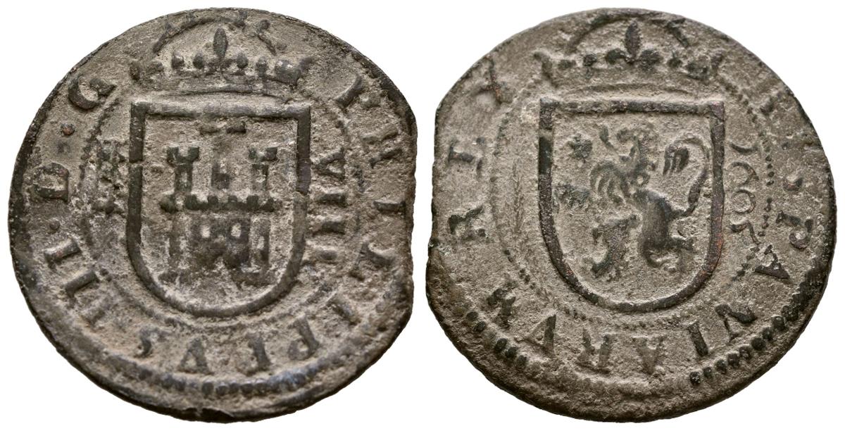 FELIPE III (1598-1621). 8 Maravedís. (Ae. 5,74g/27mm). 1605. Segovia. (Cal-2019-327). MBC. Cospel faltado.