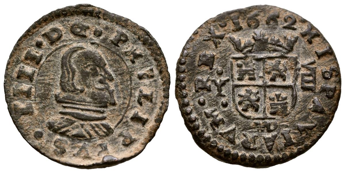 FELIPE IV (1621-1665). 8 Maravedís. (Ae. 2,04g/21mm). 1662. Madrid Y. (Cal-2019-359). Ceca debajo del escudo. MBC