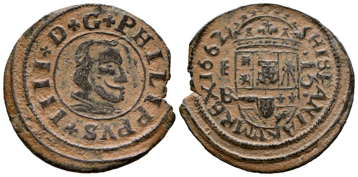 FELIPE IV (1621-1665). 16 Maravedís. (Ae. 3,41g/26mm). 1662. Segovia BR. (Cal-2019-488). MBC.